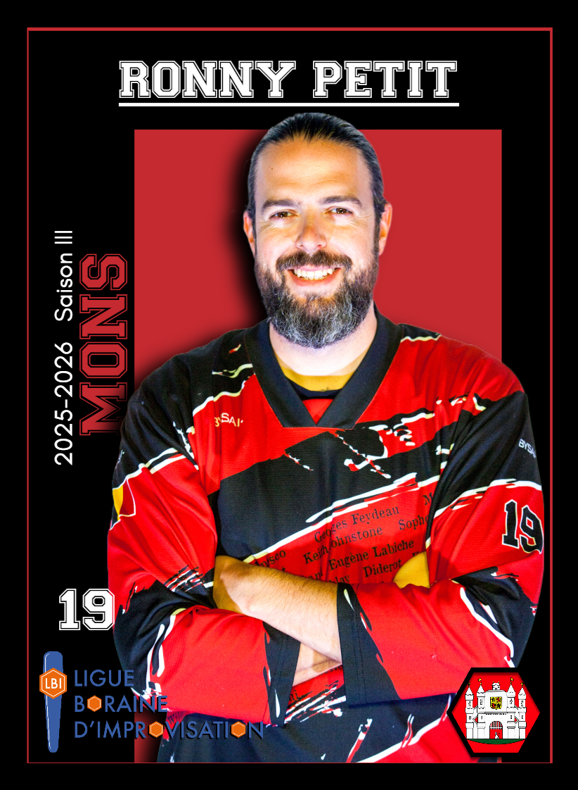 Arrivé à la LBI la saison passée avec Quaregnon, Ronny n’a pas mis longtemps à se faire remarquer. Présent lors de la finale 2024-2025, il a eu le courage d’ouvrir et de clôturer le match, assumant les moments les plus lourds de pression avec brio. Charismatique, maître du comique gestuel et du rythme (il est aussi danseur), il excelle dans les mimiques et manipulations précises. Capable de passer du gag visuel à l’émotion pure, Ronny est un capitaine audacieux qui mène ses troupes avec enthousiasme et assurance.